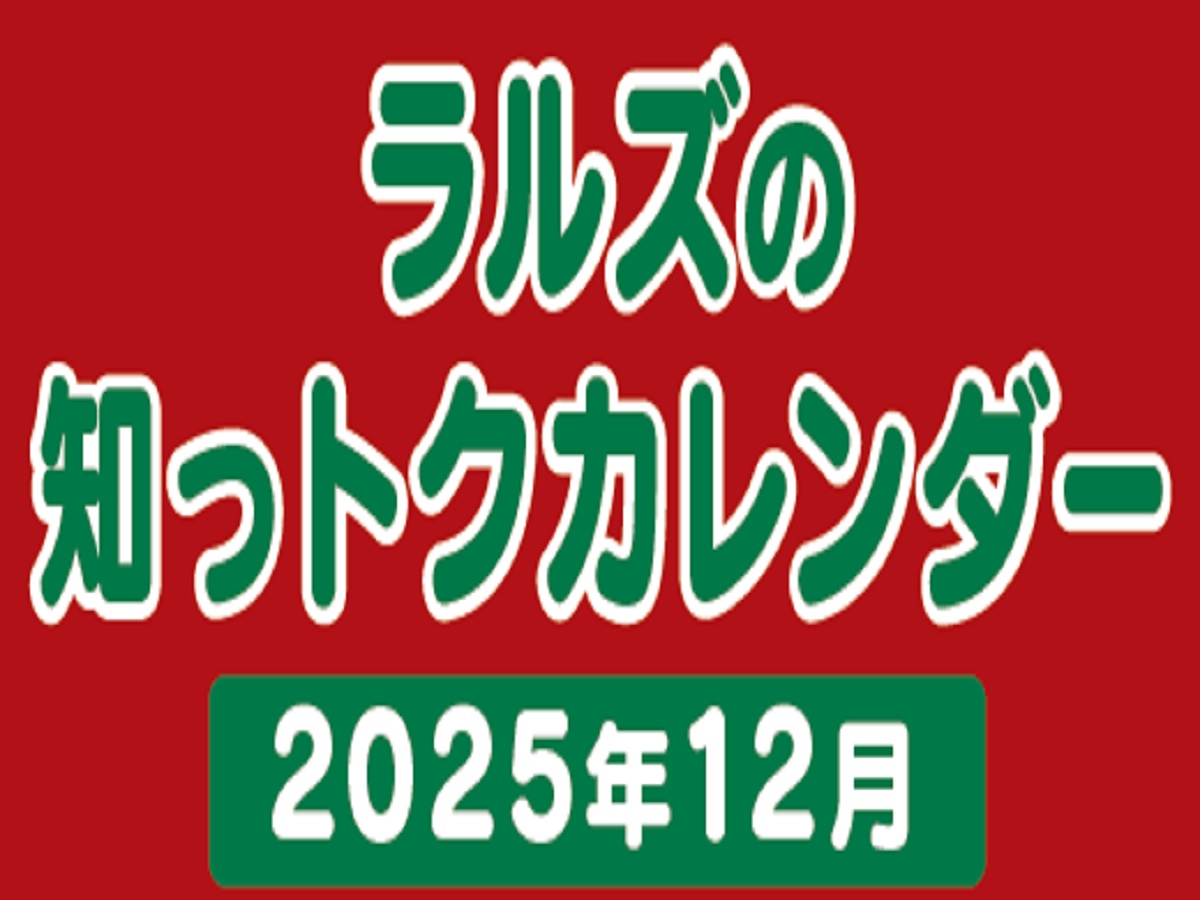 2025年12月の知っトクカレンダーを掲載いたしました。店舗により企画内容・日程が異なります。ご確認の上ご来店ください。 ※札幌・恵庭・千歳・北広島・石狩・江別・苫小牧・岩見沢の店舗および桂岡店はこちら※小樽(桂岡店除く)・余市の店舗はこちら※室蘭・登別・伊達の店舗はこちら