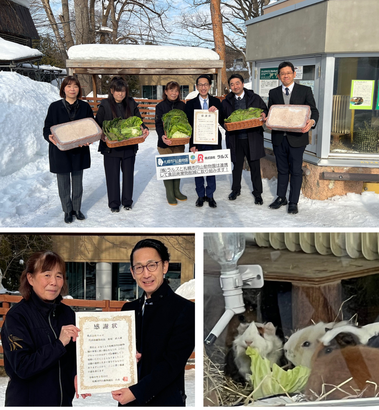 株式会社ラルズ(本社:札幌市中央区)は、店舗やセンターにて発生するキャベツの外葉や端材、長いもの箱の中に入っているおがくずなどについて、動物たちの飼料や排泄物の吸収等に使用する目的のもと、必要とされる事業者さまへ無償でご提供する取り組みを実施しております。この取り組みに対し、2026年2月10日(火)、札幌市円山動物園様からラルズへ感謝状が贈られました。